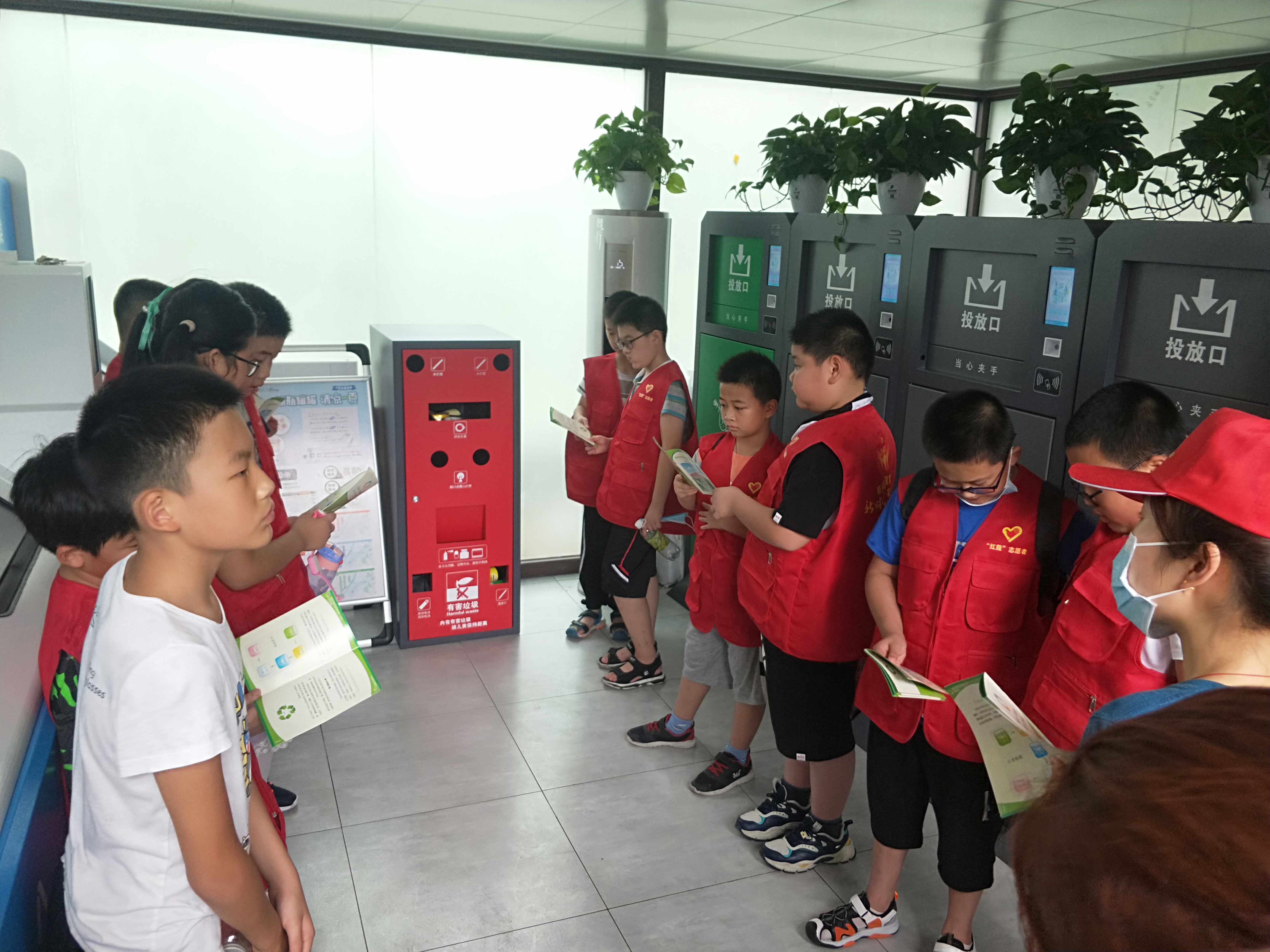 紧接着,志愿者带领同学们来到绿洲南苑垃圾分类环保屋,给同学们派发了生活垃圾分类指引等宣传资料,同时进行垃圾分类知识普及,向他们介绍生活垃圾一共分几类、为什么要进行垃圾分类、平时家里产生的垃圾如何进行归类等,让孩子们对垃圾分类有一个基本的了解。