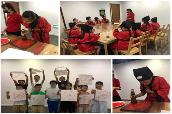 当天恰值24节气的处暑,孩子们身着“汉服”动手“画扇”“拓印”,进一步体会24节气中人与自然的和谐共生,感受中华传统文化的博大精深。