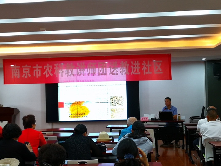 9月28下午,“南京市农科教讲师团送教进社区”活动在浦口区江浦街道团结社区会议室举行。活动由江浦街道成教中心校校长卞迎春主持,南京金陵科技学院王明海副教授应邀为社区居民作培训。