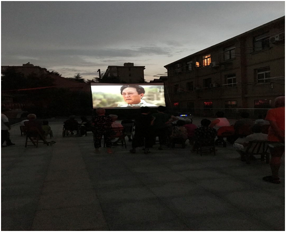 通过放映露天电影,既丰富了居民们的文化生活,又增进了彼此之间的感情,缓解了社区居民的工作生活压力,同时激发了居民们的爱国情怀,为构建和谐社会,“融合”社区文化品牌打下基础。