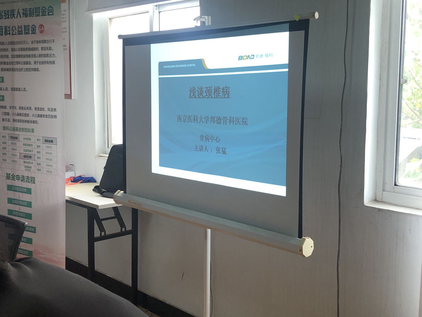 社区邀请了邦德骨科医院的张猛医生为老年人开展有关颈椎病健康知识讲座,张猛医生用通俗易懂的话语为老年人讲解,期间还和老人们不断互动,有奖问答,把活动推到了高潮,结束后,仍有老人不断向张医生咨询骨科知识,张医生也很耐心的解答,深受到老人们的欢迎。
