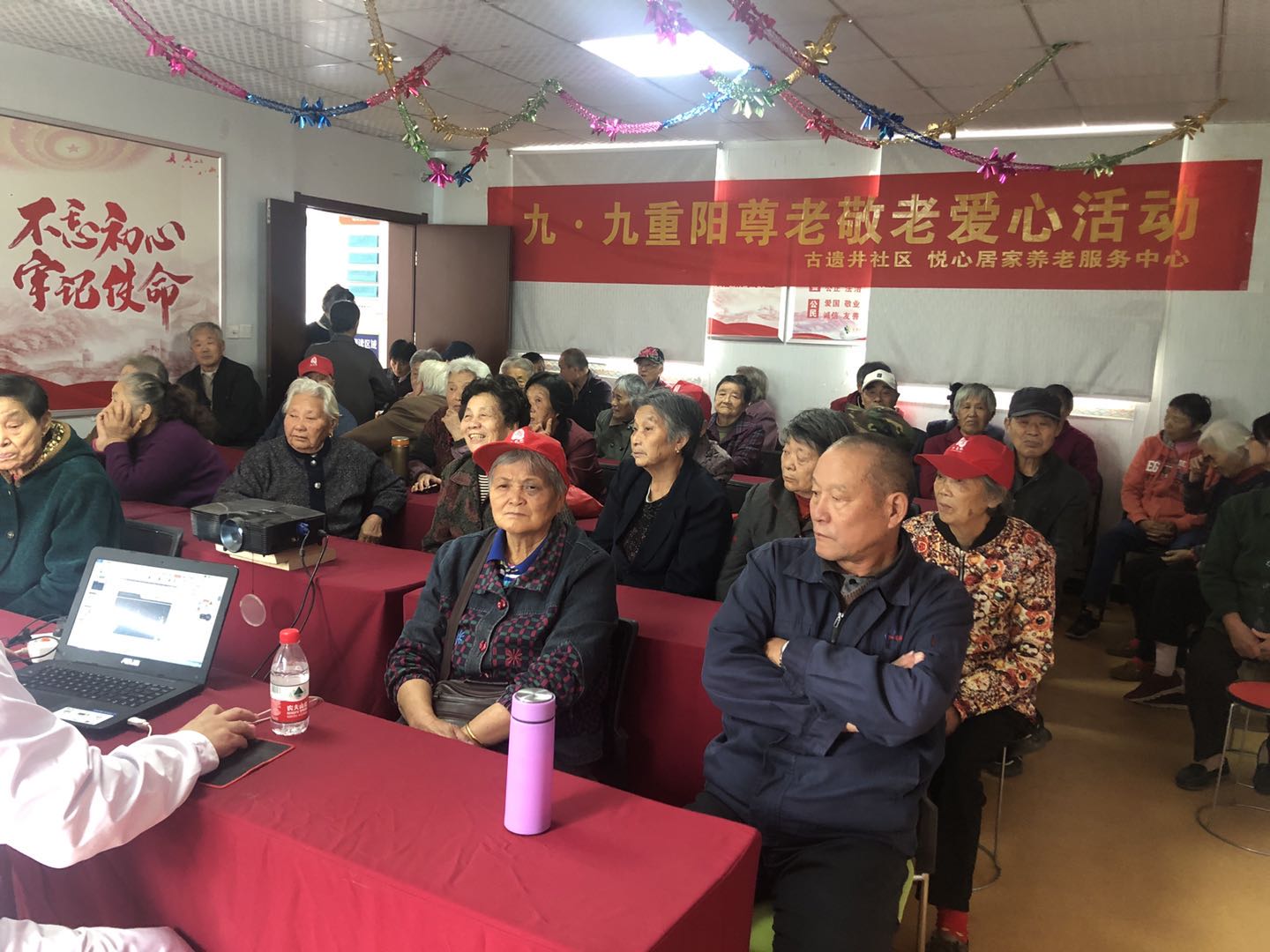 金秋十月,秋风送爽。在重阳节来临之际。为弘扬中华民族敬老、爱老助老的传统美德,营造和谐社会的良好氛围,进一步增强全社会的敬老意识,使“老有所养、老有所乐老有所为”落到实处,古遗井社区联合悦心居家养老服务中心积极组织开展了重阳暖心系列爱心助老活动。