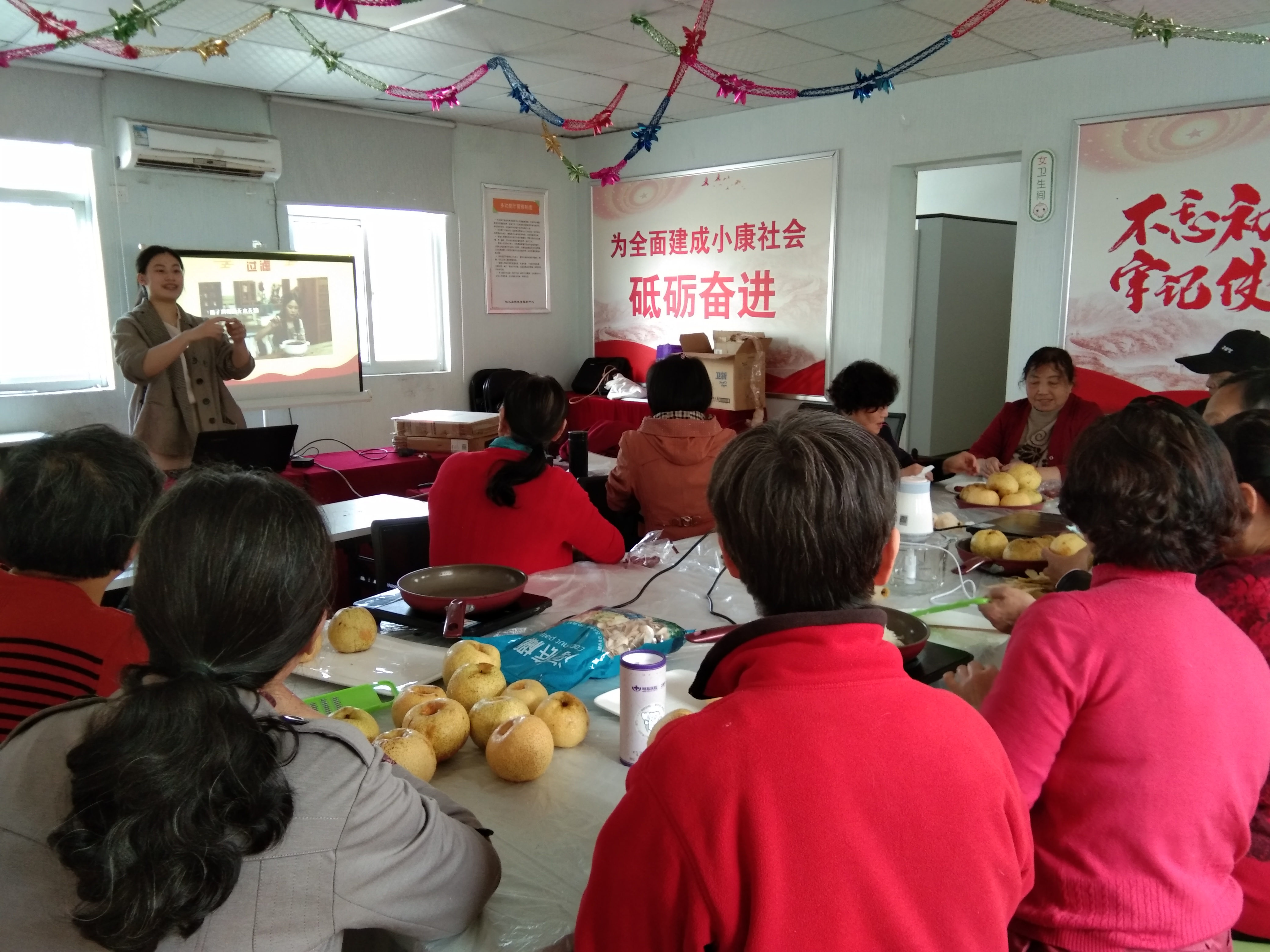 秋季转凉,气候干燥,初秋正好是养生好时节,老人的肺脏很容易因秋燥而伤。为了好好利用这个时期让老人拥有一个好身体,在秋季可以预防秋燥热咳,社区带领居民一起手动制作秋梨膏。