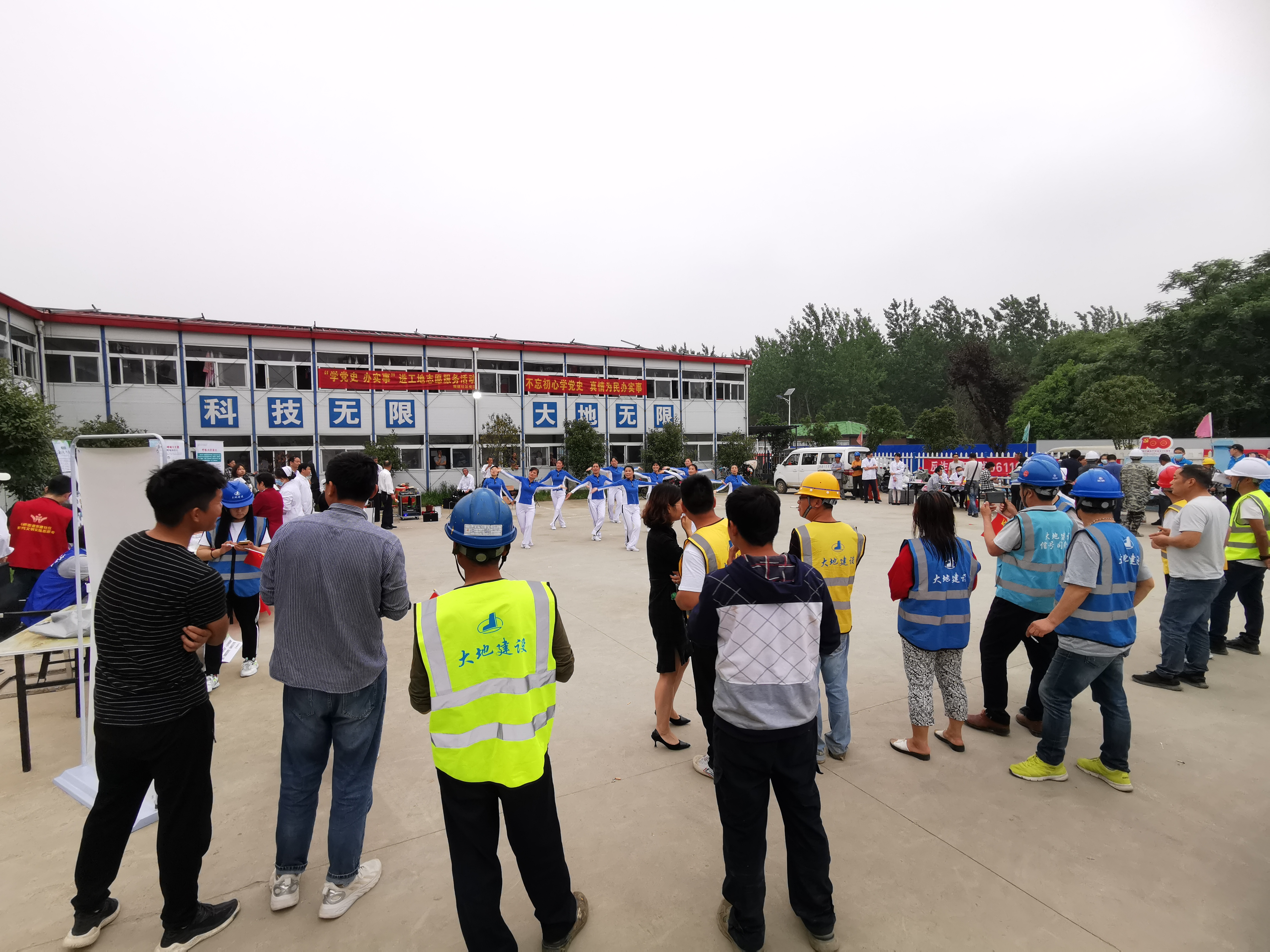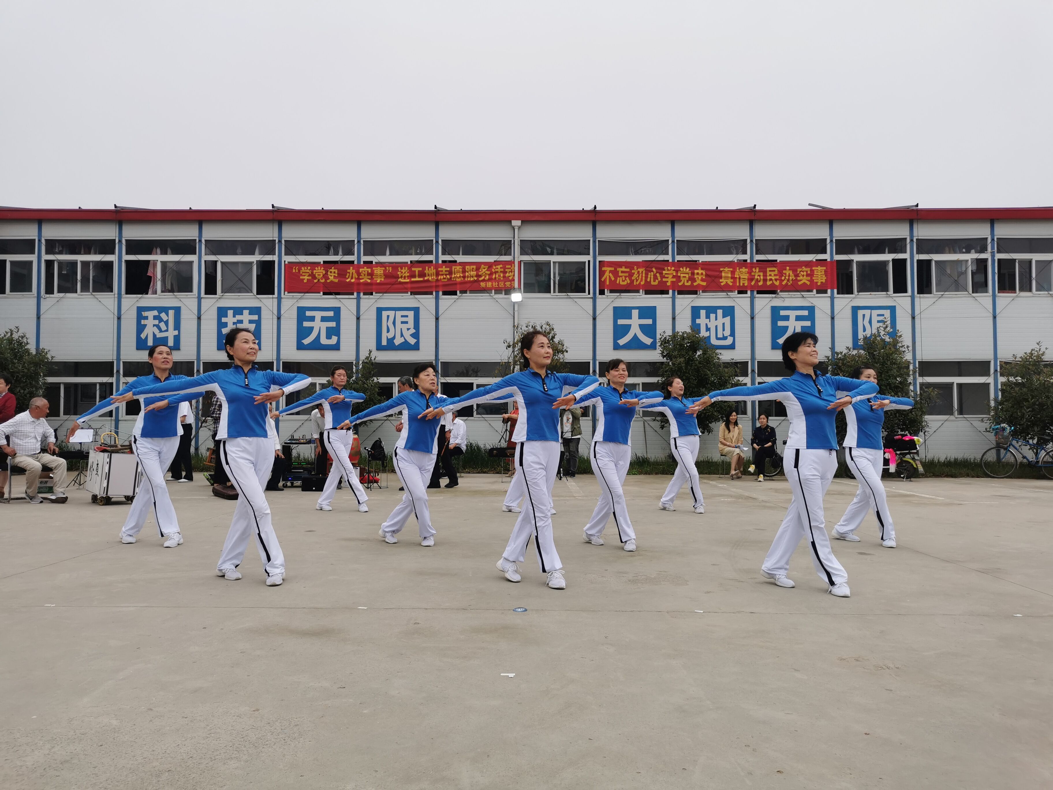 虽然没有华丽的舞台,没有炫亮的灯光,没有精致的演出服,但新建社区的轻舞兰香舞蹈队成员个个神采奕奕、热情饱满。阿姨们随着音乐的节奏,踩着轻快的节奏,整齐的动作力,不同的队形变换有序。在为工地工人带去欢乐的同时,她们也传递着构建和谐社区的理念,只要社区有需要,她们每个人都会积极响应参与活动。