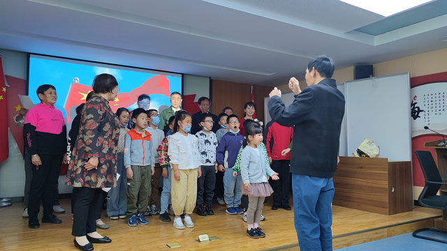 活动开始,老师首先对参加活动的学生进行歌曲培训,今天的培训曲目是《没有共产党就没有新中国》,接着大家开始和爷爷奶奶们进行合唱排练,孩子们洪亮有力的歌声赢得了爷爷奶奶们的肯定和赞许。活动最后,社区党员和歌唱爱好的小朋友们一起演绎歌曲,铿锵有力的歌声感染在座的家长,大家都拿出手机记录着美好的一刻。