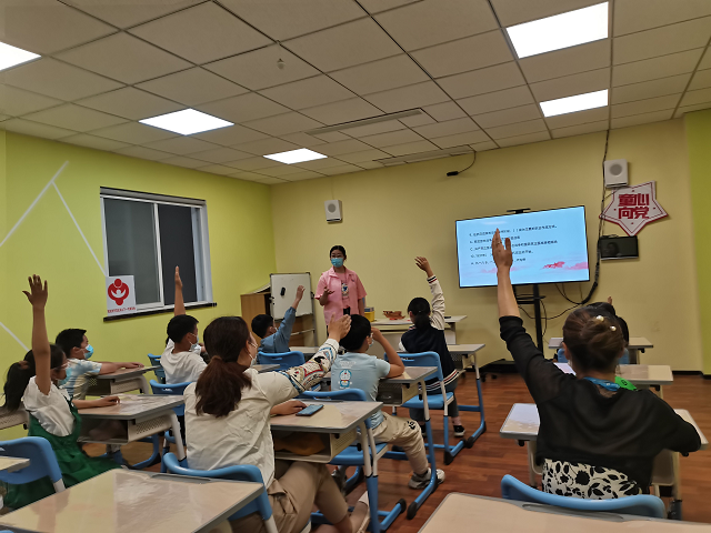 活动中,青少年们齐唱《我们是社会主义接班人》,明确新时代青少年肩上的责任。老师通过PPT向青少年讲解“四史”知识,使他们了解和学习中国共产党史、新中国史、改革开放史、社会主义发展史,更深入了解我们国家、民族、和党的发展进程,从而明确目标与方向,并深切感受到改革开放以来我们取得伟大成就的来之不易。“四史”知识小组竞赛中,在场每位青少年都踊跃举手,认真答题。