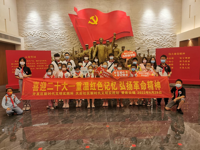 南京江北地区是南京工人运动和党组织的起源地,是近代中国革命星星之火较早被点燃的地方之一。为了将红色传统发扬好,红色基因传承好,2022年6月28日,天后社区联合南京雨花爱在云端青少年发展中心开展喜迎二十大“重温红色记忆 弘扬革命精神”红色足迹寻访活动。