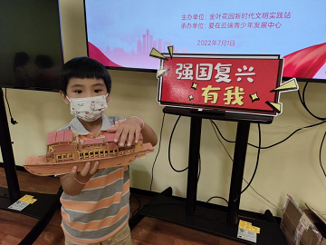 为庆祝中国共产党成立101周年,喜迎党的二十大胜利召开,激发广大青少年爱党爱国情怀,争做红色少年。2022年7月1日,金叶花园筹备办联合雨花爱在云端青少年发展中心开展“搭百年红船 抒爱党情怀”庆七一主题活动。