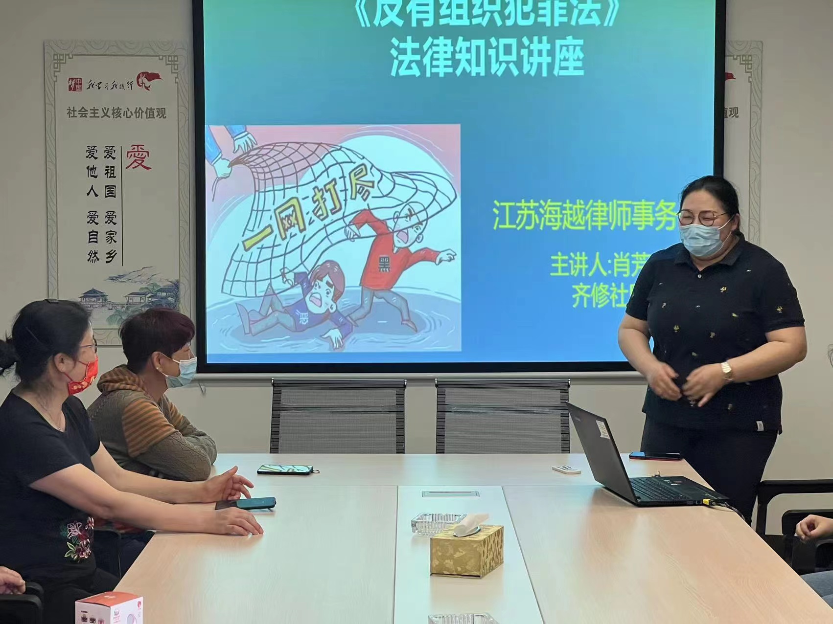 2022年5月7日,齐修社区组织相关居民群众代表齐聚在党群服务中心二楼学习反有组织犯罪法。社区“三官两师”团队派出专业法律顾问进行宣传讲座,从反有组织犯罪法的立法目的、立法背景、立法程序以及对法律条文的逐条解读等方面详细地为大家阐述了反有组织犯罪法。讲座的过程中律师结合当下社会的有关热点问题,通过举例说明,通俗易懂地帮助大家理解法律知识,逐一回答了居民们的问题,得到了大家的一致好评。大家纷纷表示自己学到了很多的法律知识,提升了自身的法律素养,感谢社区法律顾问的细心讲解,并表达了今后要积极配合国家反有组织犯罪法的实施,知法守法,做一个合格公民,并且还要积极协助国家机关和社区组织同违法行为作斗争的决心。