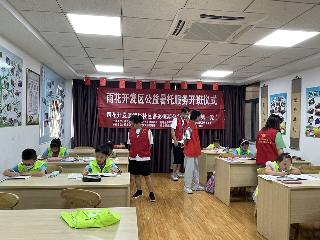 暑假来临,为了帮助双职工父母缓解学生暑期看护难的问题,雨花经济开发区联合辖区内各社区开启暑托服务,锦华新城社区作为开发区第一期开班的社区目前已招募儿童15名。
