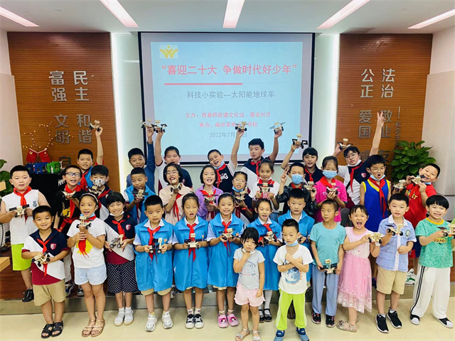 为了丰富辖区青少年文化生活,弘扬科学精神,普及科学知识,激活青少年对宇宙太空的无限好奇,启发主动探索科学奥秘的兴趣和能力。7月17日,西善桥街道文化站、嘉业社区联合南京军地专修学校开展了“喜迎二十大 争做时代好少年”科技小实验--太阳能月球车制作活动。