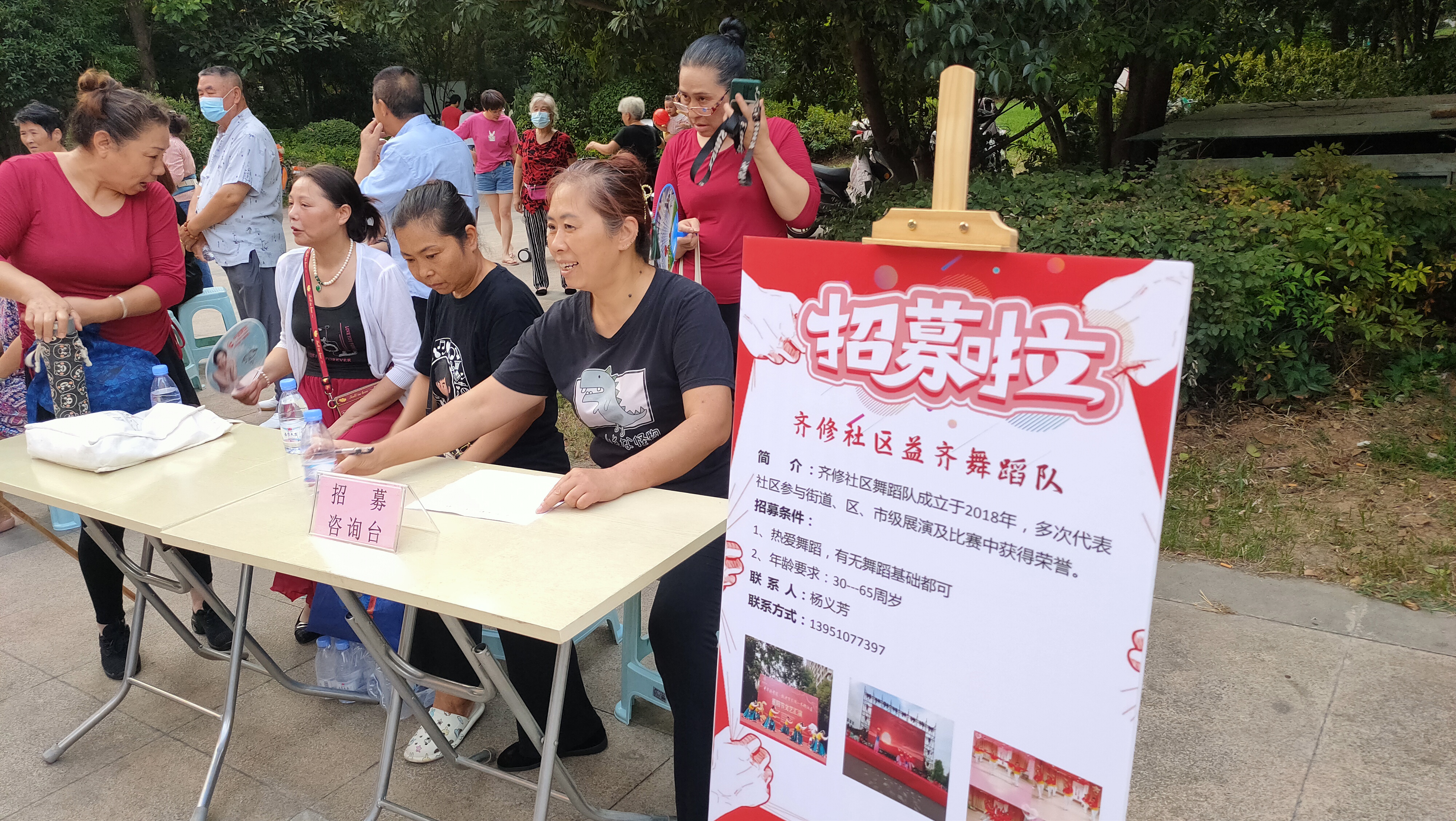 齐修社区“”益齐艺术团”以“四立”为“机”,在“立春、立夏、立秋、立冬”节气进行“文艺进园区”活动,以艺术团展演为机会,每季度进行新人招募,为社区开放大学源源不断招募新人。