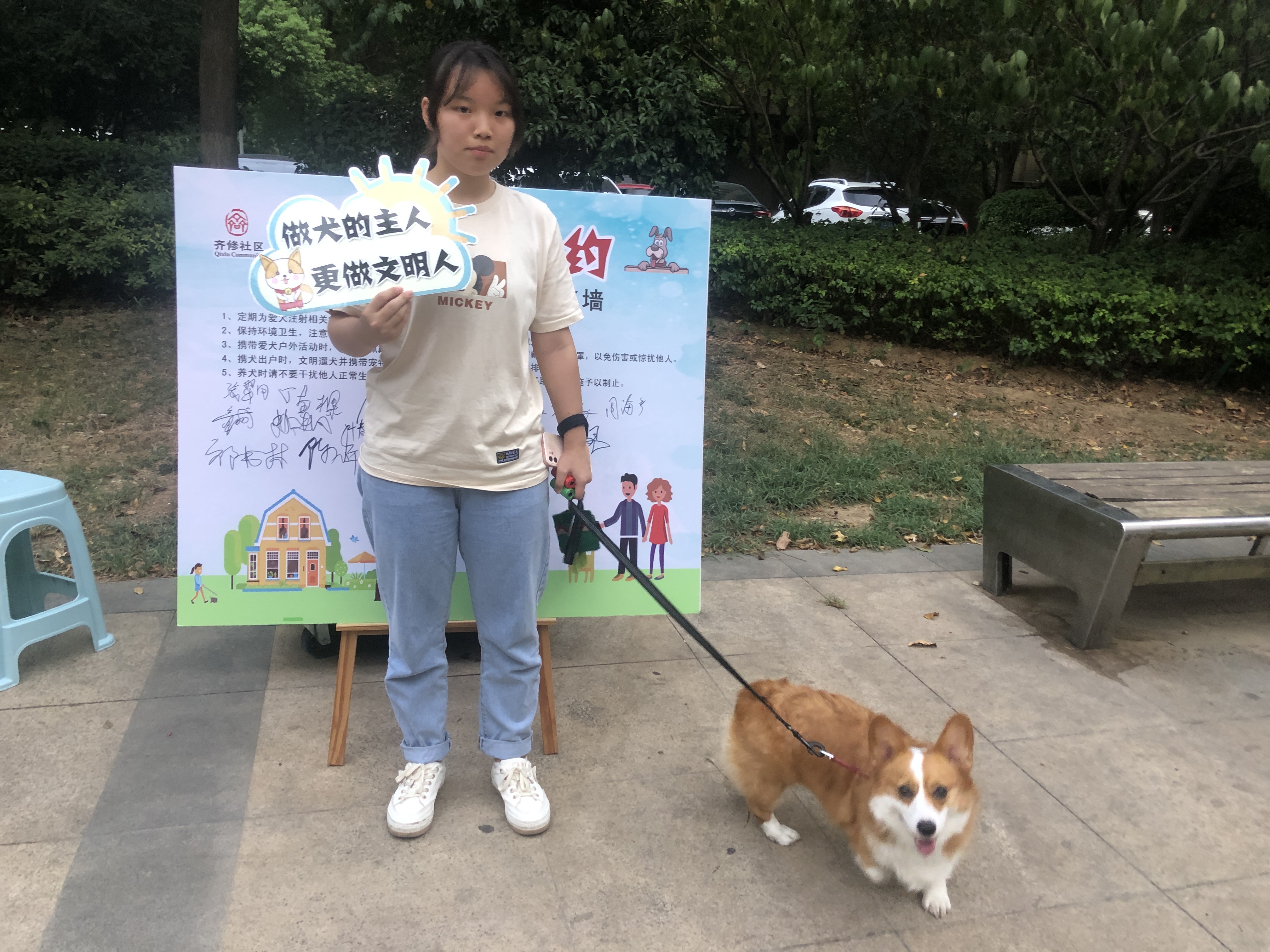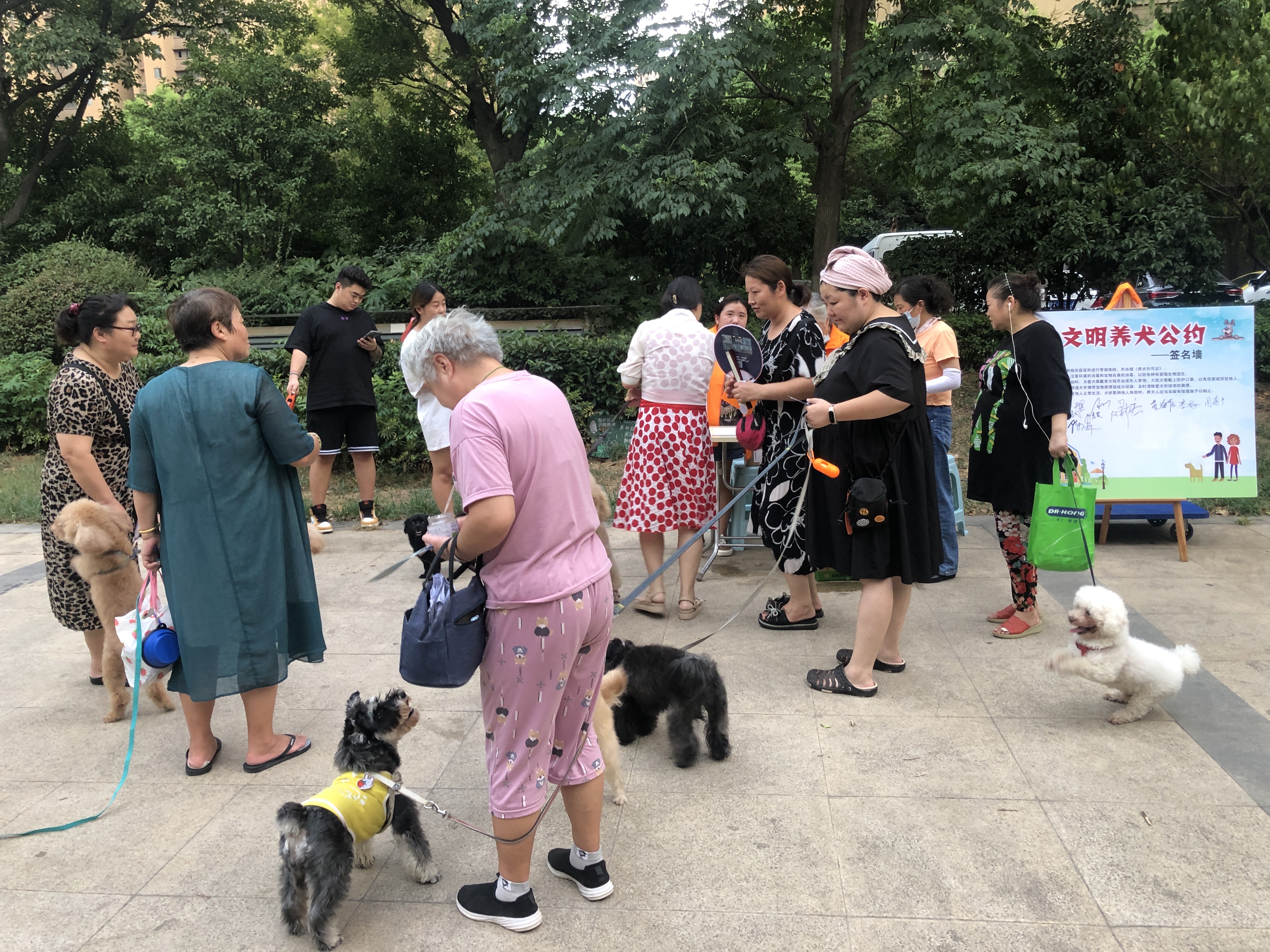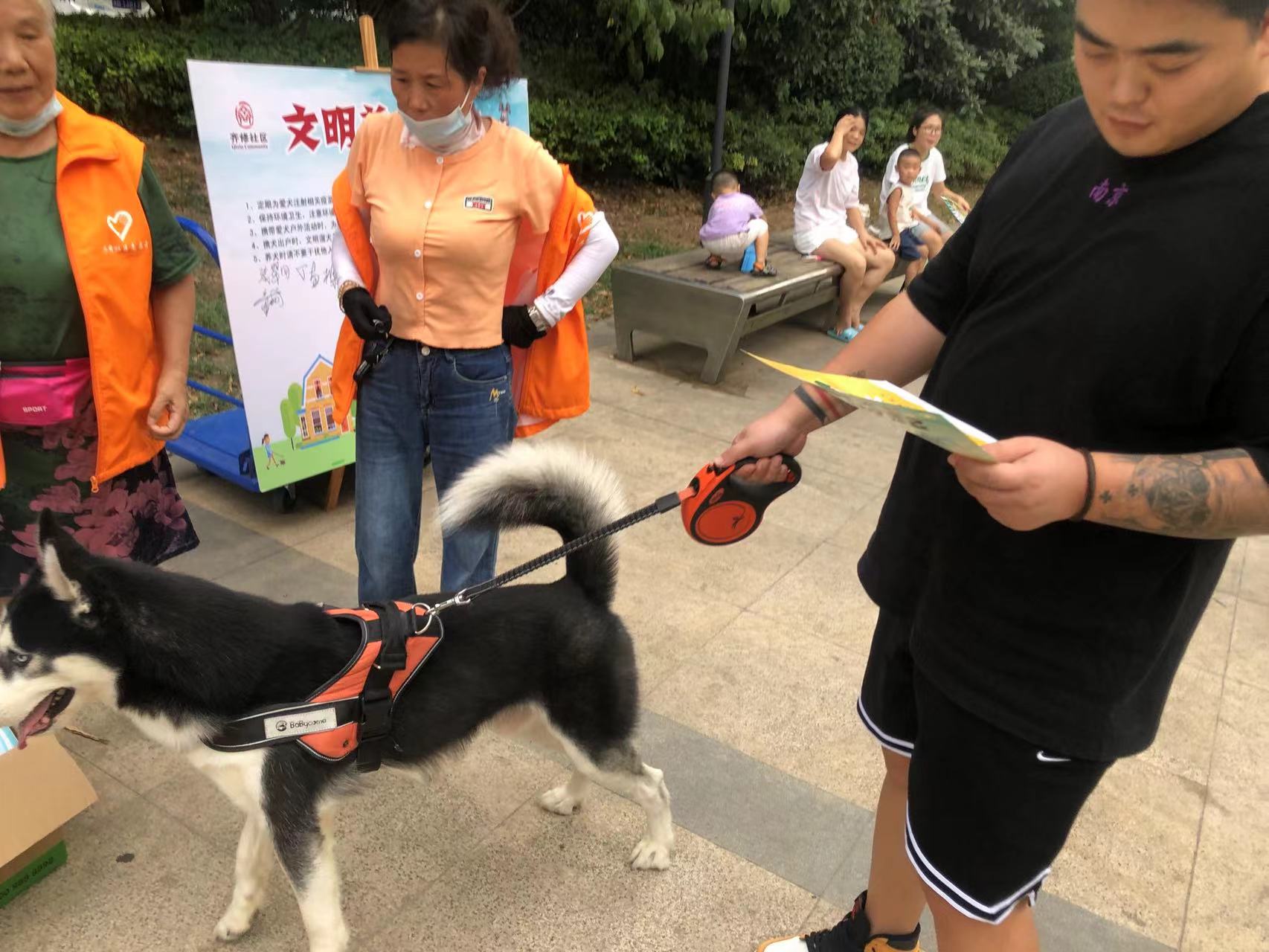 8月22日晚,齐修社区联合萌宠俱乐部,在齐修北苑开展“创建文明城市 做文明养犬人”宣传活动。工作人员与志愿者为现场的养犬居民发放文明养犬宣传页,并通过宣讲形式引导小区养犬居民自觉遵守《文明养犬公约》;活动现场还开展了文明养犬知识有奖竞答,现场居民积极回答,寓教于乐;大家扫码加入“齐修社区萌宠俱乐部”微信群,签订了《文明养犬协议书》,并在文明养犬公约签名墙上郑重承诺。