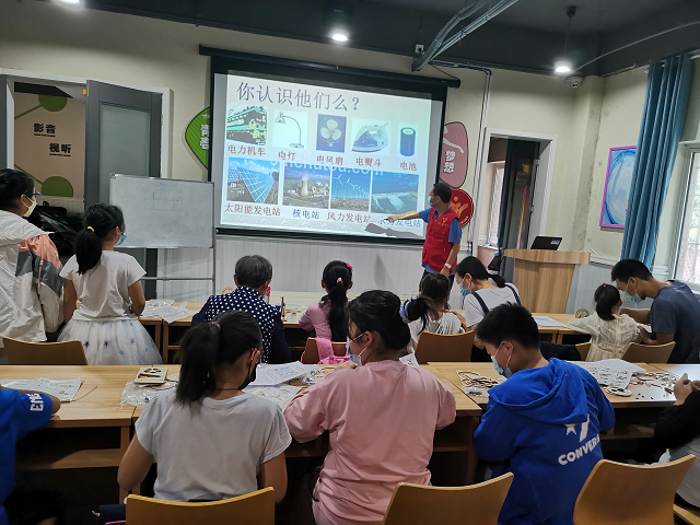 “同学们,我们生活中处处都离不开电,我们的小到手机、电视、电脑、电灯,大到高铁、飞机、载人飞船等等,都离不开电。但是,你们有没有想过,电是怎么产生的??”随着志愿者老师的提问,小朋友们一下子进入了电的世界,同学们的脑海中就有了很多对电的疑问,“电是如何产生的呢?”……随着孩子们的“十万个为什么”,老师开始为同学们讲解发电机原理,带领孩子一起探索生活中发电机的作用。