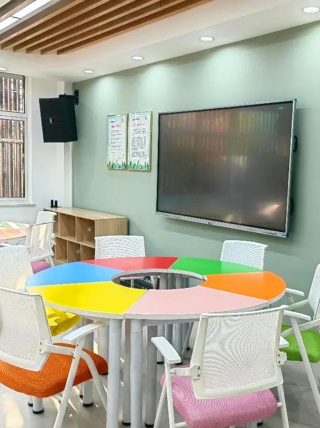 配备活动桌、活动椅、室内活动箱、音箱、话筒、一体机等专业设施,是以团队或者小组方式开展活动的场所。团体辅导室可以帮助来访者释放心理压力。