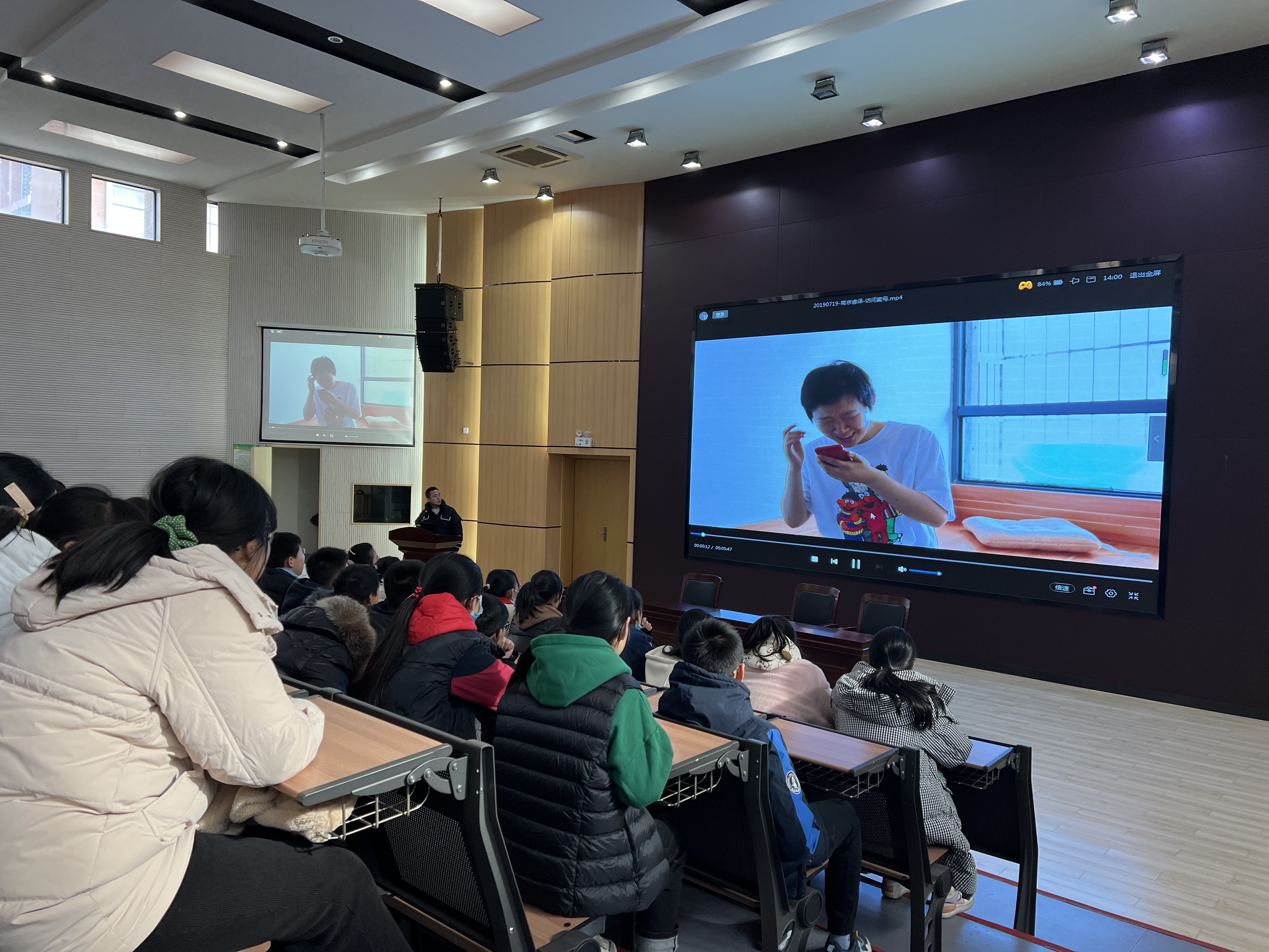 讲座中,主讲人辛福首先给孩子们普及了什么叫公益,日常生活中有哪些公益行为。接着向我们讲述了自己的公益事业,向孩子们介绍了自己的帮扶对象和公益服务机构,用图片和视频的方式带孩子们走近了一些障碍人士生活经历,感动了在场的所有孩子。