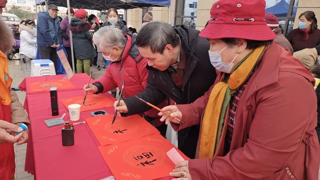 齐修社区居民们把“福”字一笔一划地写在喜庆的红纸上,用手中的毛笔,将最真挚新春祝福传递。