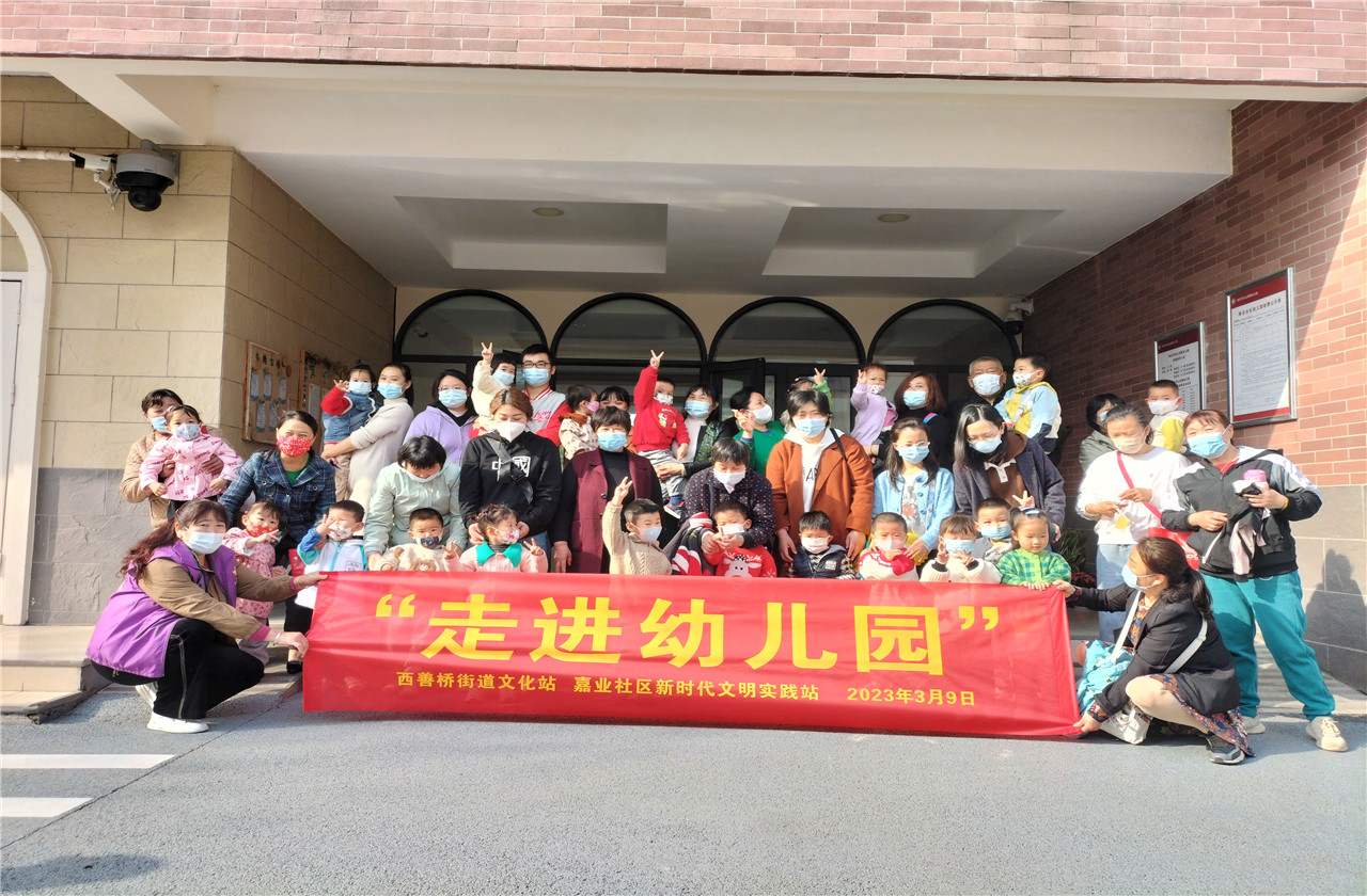 “交流促发展、共谱嘉园情”,为了让家长更好地了解幼儿园的办学理念、课程设置,让孩子们更好、更快地适应幼儿园的生活和学习环境,今天上午,嘉业社区亲子馆的20组幼儿家庭参加了西善桥街道主办、嘉业社区新时代文明实践站协办的“走进幼儿园”活动。