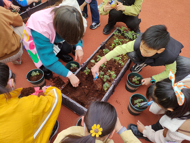 陈鹤琴先生说:“大自然和大社会都是活教材。”金叶花园筹备办搭建了一个亲近自然、亲子陪伴的社区菜园,让孩子们更深切的感受植物生长的奥妙、种植的乐趣。孩子们兴致勃勃地挖坑、种植、施肥、浇水,不一会儿的功夫,番茄、辣椒、西瓜等农作物已纷纷种好。活动最后每位小朋友认领了一颗小番茄,并成立种植小组,每日打卡分享植物生长,记录美好瞬间。