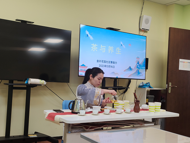 《茶经》有云:“茶之为饮,发乎神农氏”,从古至今,茶从种植到被人品尝,都需要经历许多的千锤百炼,才能最终吐露芳香。然而在生活中,有很多人都在喝茶,却不了解茶,不同体质的人群,不同季节应该如何饮茶才能达到养生的效果,如何喝茶才能养生?为了带领辖区居民增进对传统茶艺的了解,提升修养,陶冶情操,感受茶文化的魅力,2023年 3月16日下午,金叶花园筹备办组织辖区居民开展“品味人生 养生茶道”茶艺交流活动。