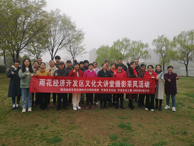 阳春三月,草长莺飞,正是一年中最美的时节。为丰富社区居民精神文化生活,营造文明友爱、欢乐祥和的社区氛围,3月21日,雨花经济开发区新时代文明实践所、开发区文化站、开发区关心下一代委员会携手开展雨花经济开发区文化大讲堂摄影采风活动,组织金叶花园筹备办和锦华新城社区居民外出摄影采风,以精彩纷呈的镜头展现雨花开发区的发展变迁和人文风采。