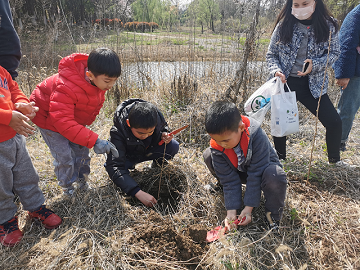 玩自然,学自然,让生活于都市中的孩子们走近大自然,与土地亲密接触。老师讲解植树的要求和注意事项,志愿者带上提前准备好的苗木、铁锹、水桶,来到三桥湿地公园开展植树活动,大家热情洋溢、干劲十足,刨坑、扶正树苗、填土、浇水,热闹非凡,各个环节衔接有序,用实际行动增添一片生机勃勃的绿色。