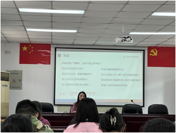 讲座结束时,授课老师用自己总结的“六不法”(个人信息不留名、陌生境外电话不接听、线下免费养生旅游活动不参加、高额回报不动心、未经充分核实不付款、报警举报不拖延。)来告诉在场的每一位老人,老师也让每位来听课的人回去告知身边每一位亲朋好友,避免大家上当受骗。