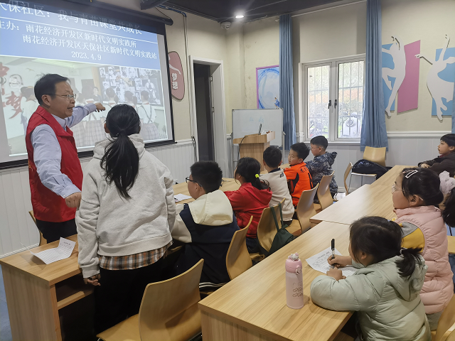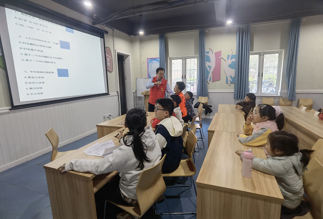 “同学们,你们知道我和我的祖国这首歌的来历吗?......”孩子们聚精会神的听着志愿者教师的讲解,在故事中认识了热爱祖国的意义和青少年健康成长的重要性。