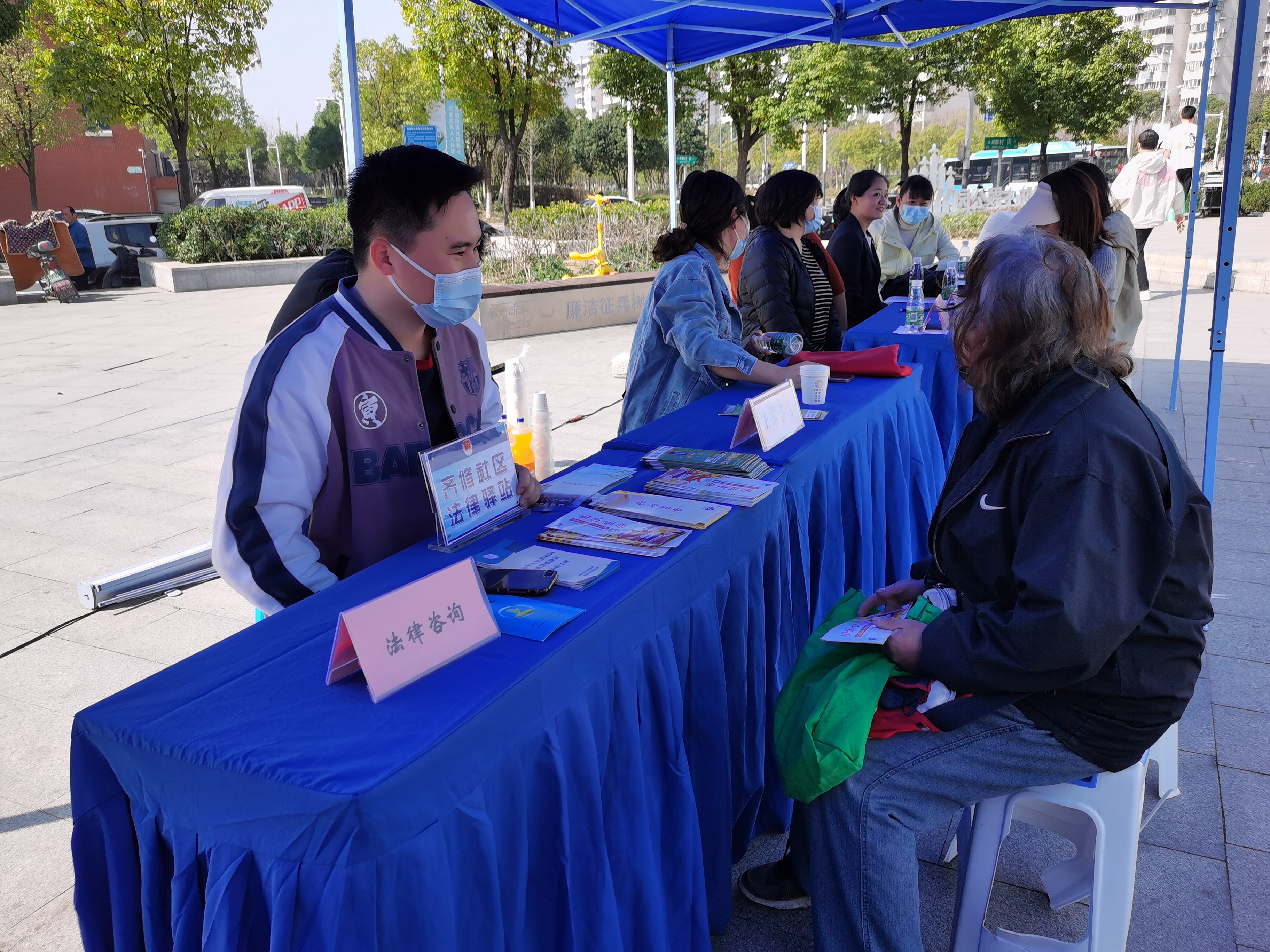 2023年3月10日,岱山片区在西善花苑广场隆重举行社会招聘会,齐修三官两师团队联合西善桥街道司法所在招聘会摆放摊位,为招聘者和企业提供免费的法律咨询,并向他们发放劳动者法律知识和企业经营法律知识手册,为活动提供法律保障。