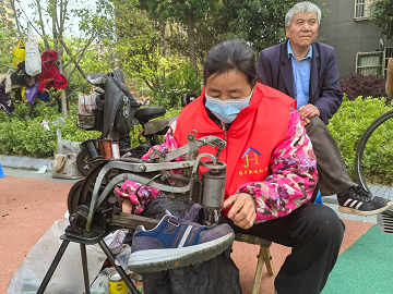 理发师认真又耐心地根据每位居民的年龄和头型特点,精心为他们修剪头发;磨刀师傅手握刀在磨刀石上来回磨着,不出几分钟,一把把刀具被修理的光亮如新;居民拿过来的鞋子有的鞋底脱胶了、有的侧边线松了,经过修鞋阿姨的巧手修补,一双完好的鞋子又展现在眼前。社区党员还给居民讲解反诈政策,了解社情民意,现场一派和谐有序。贴心的服务、精湛的技艺赢得了居民的一致点赞。