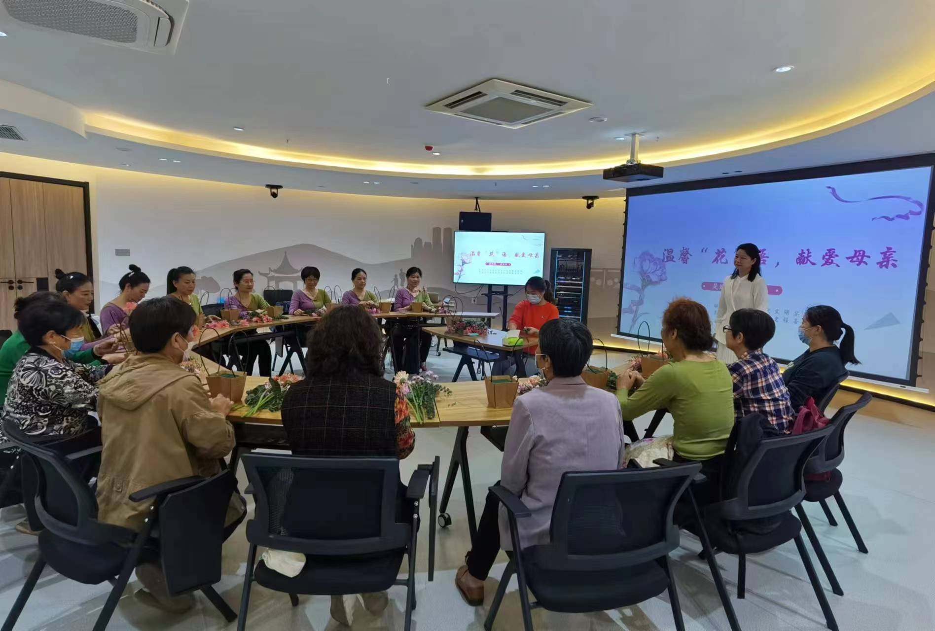 在插花环节中花艺老师向大家介绍了此次插花教学活动的主要内容和插花要点,大家认真地听了花艺师的讲解,动手整理花材、修剪枝叶,充分发挥想象力和创造力,将手中的花材搭配得错落有致,制作出一件件赏心悦目的插花作品。当阿姨们拿起自己的作品时,鲜花与笑脸相映,更彰显出新时代母亲的风采,淡淡的花香四溢,也在为阿姨们送出阵阵祝福。
