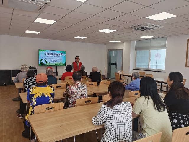 活动现场志愿者播放绿色生态宣传视频,并倡导居民形成绿色低碳生产生活方式:垃圾分类,减少环境污染、减少资源消耗;选择绿色低碳出行,优先步行、骑车或公共交通出行,节约能源、减少污染;珍惜粮食,拒绝“舌尖上的浪费”;使用环保用品,减少使用一次性用品。通过宣讲引导辖区群众充分认识到尊重自然、顺应自然和保护自然的重要性,呼吁大家用实际行动践行“绿水青山就是金山银山”理念,增强居民生态环保意识。