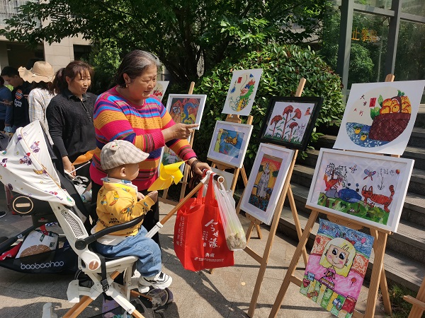 一幅幅作品无不展现出创作者们对家国情怀的感悟与对生活的热爱。儿童作品色彩鲜艳、构图丰满、视角独特,成人画作苍劲有力、栩栩如生。大家被一幅幅作品的视觉之美所感染,忍不住夸赞,孩子们表示自己以后也要学习画画。