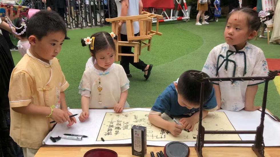 油坊社区新时代文明实践站将竹林国学文化送进七彩幼儿园,带领孩子们重温传统习俗,传承中华优秀文化。140余名孩子着华丽的汉服出席,站C位、当主角。身着汉服的礼仪仙气十足,手持艾草娉婷而立,遵循古礼,用艾草蘸取沐兰汤轻拂孩子们的双手、额头、脖颈处,寓意除却污秽,神清气爽。后由家长带着孩子们一起挂起“祈福签”,祈福端午顺遂安康。