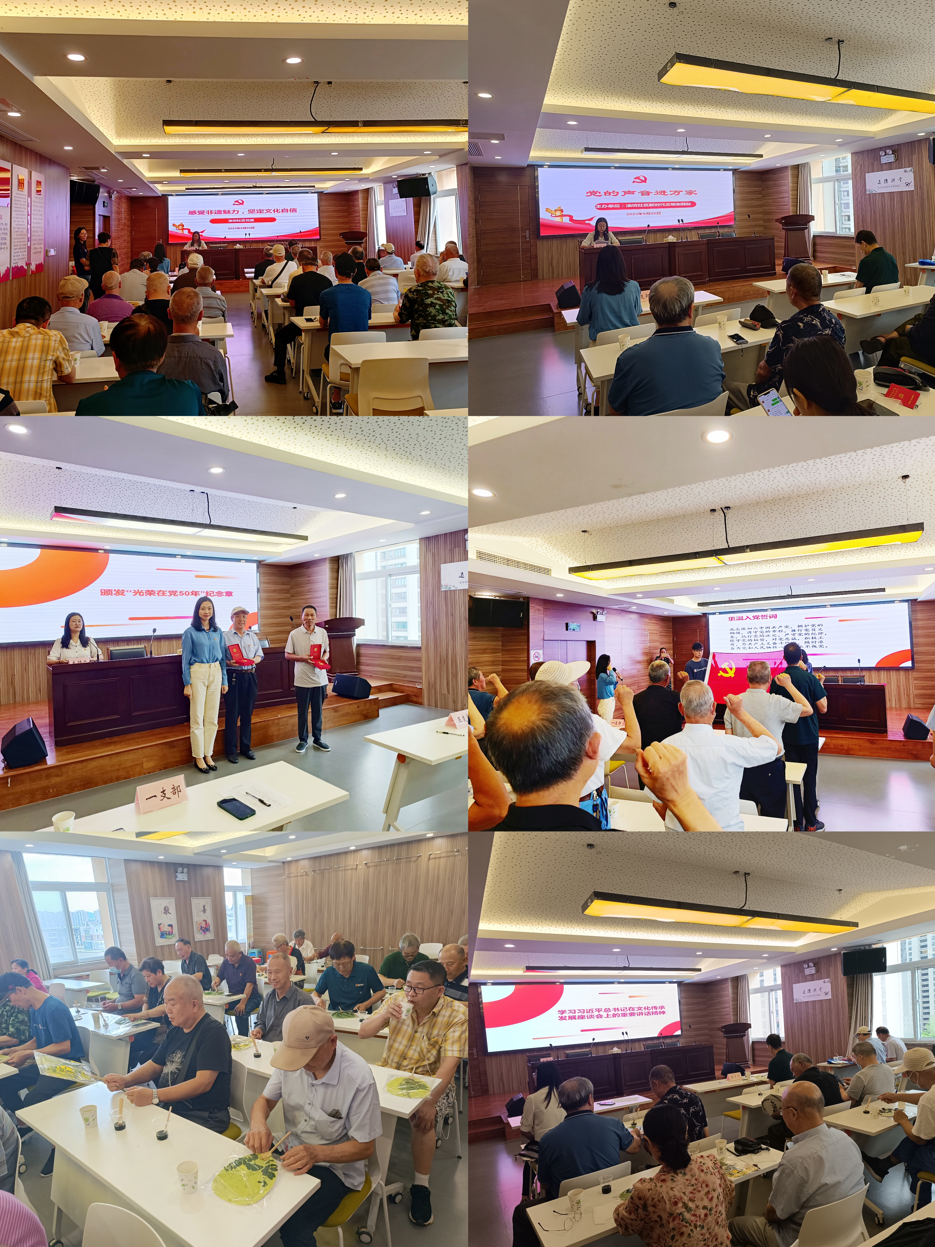 6月26日下午14:30在社区五楼大会议室举行了油坊社区党委第一支部“感受非遗魅力,坚定文化自信”党员活动,活动一开始通过视频,学习了习近平总书记在文化传承发展座谈会上的重要讲话精神。接着由油坊社区党委副书记尹捷同志为李夏九同志、牛正富同志颁发“光荣在党50年”纪念章,并带领全体党员重温入党誓词。第三项议程是由崇文国学秦老师讲述竹林七贤文化故事,并带领大家体验非遗手工——蓝晒。通过本次活动,党员学习了习近平总书记关于“两个结合”的重要论述,重温了入党誓词,坚定了理想信念,感受了中华优秀传统文化的独特魅力。