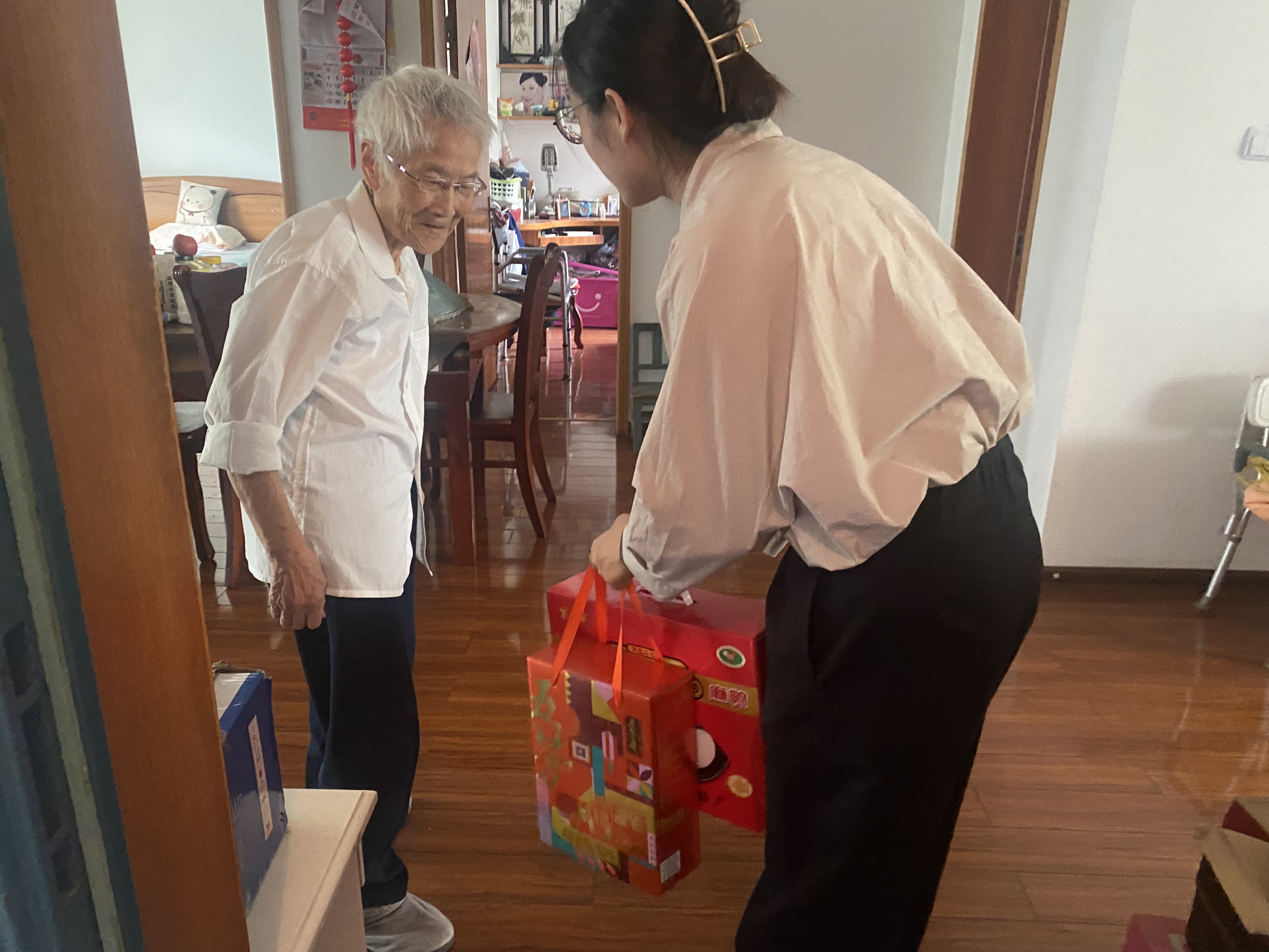 在2023年端午节临近之际,福润社区全体工作人员入户探访辖区内重点困难老人16户17人,给老人们带去了丰富的端午节礼盒。走访慰问中,网格员们每到一户都与老人亲切交谈,拉家常,询问老人的生活以及身体状况,叮嘱老人要注意身体,注意饮食卫生,并检查老人家中是否存在用火、用电安全隐患,简单的行动让老人们感受到融融暖意。网格员还叮嘱老人有事可以随时与网格员联系,网格员会尽最大的努力帮其解决。一个个爱心粽子,一句句暖心问候,让老人们十分感动。