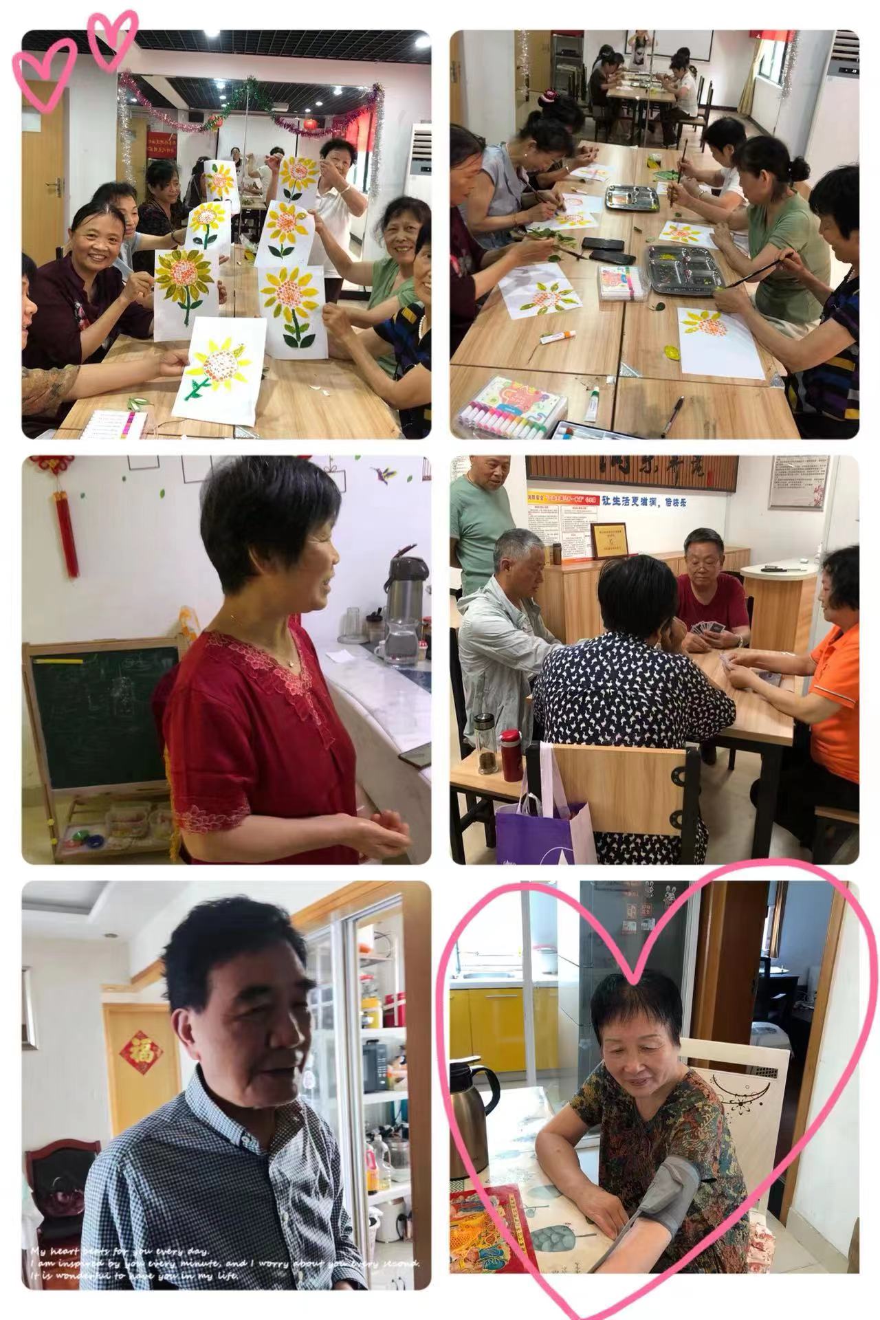 今天的手工课主题是《向日葵笑了》,老人们用她们灵巧的双手画出了绽放的向日葵,仿佛花儿在笑着,翠绿的叶子衬托的向日葵格外鲜艳,这堂手工课即锻炼了老人的手部运动,又发挥了她们的想象力,给他们的生活带来了勃勃生机。下午我们日常上门探望老人,给老人测量血压,有些老人血压有些高,接下来几天我们会持续帮助他们测血压,关注一下数据情况,及时提出合理建议!关爱老人,我们一直在努力!