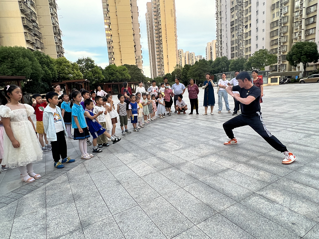 军人叔叔给大家展示了军体操和防身术动作,带领孩子走起军人队列和敬军礼姿势,在炎热的夏天,孩子们随着“一二三四”的口号走的有模有样,展示了作为祖国接班人的刚毅和自豪的精神。