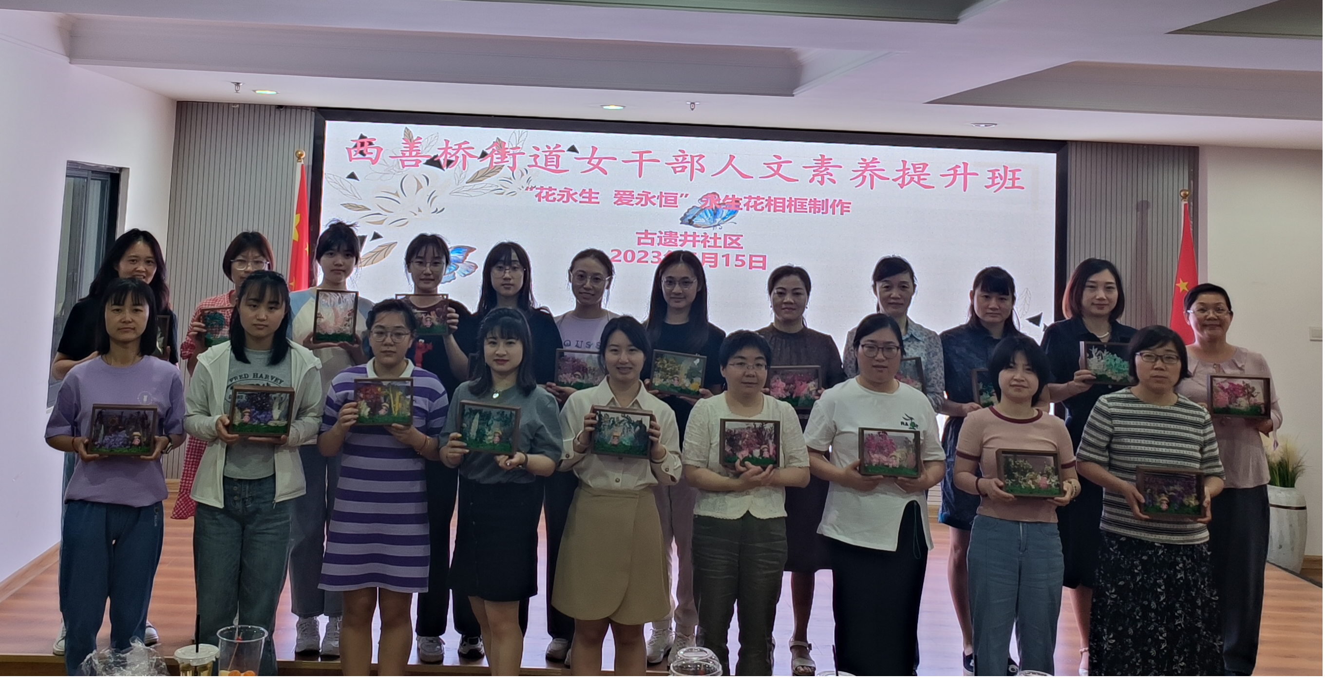 为更好地展现西善桥街道基层妇女干部的形象和思想内涵,提升妇联干部凝聚力,提高女干部职工良好的职业形象,切实打造优雅、知性、干练的女性干部团队,展示新时期女干部的精神风貌,6月15日下午,西善桥街道妇联联合古遗井社区开展“花永生 爱永恒”妇女干部人文素养提升班活动。