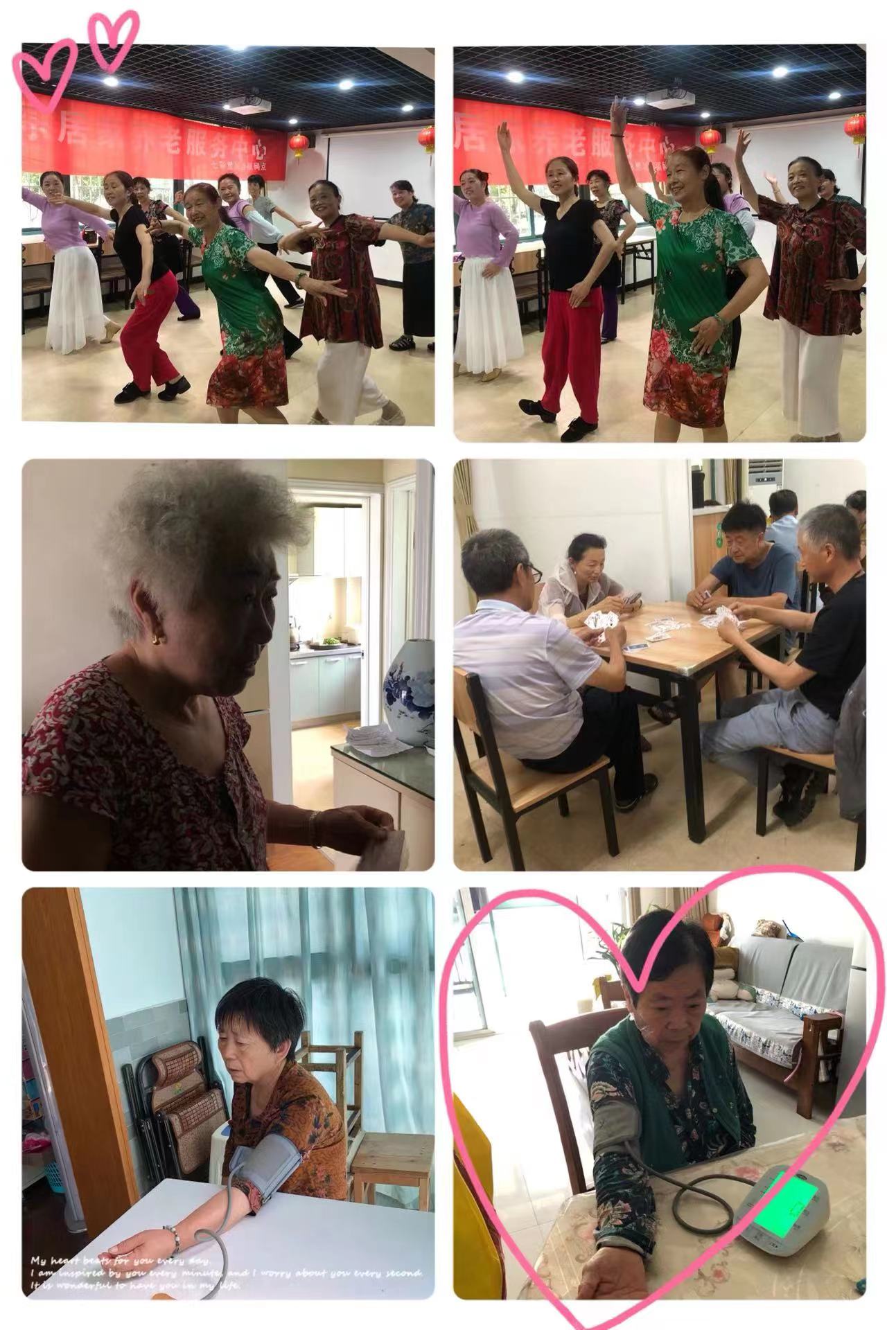 油坊社区参加舞蹈课的阿姨们早早的来到润乐居家养老中心活动室,她们挥舞着裙边,绽放着微笑,随着音乐翩翩起舞,舞蹈能给阿姨们带来快乐,也能增加他们的抵抗力、舒筋活血和陶冶情操,还可以互相交流学习。下午继续上门探望老人,给老人测量血压,和老人聊聊家常,提醒老人出门散步趁早上会凉快点,注意身体健康状况,关爱老人,我们一直在路上!