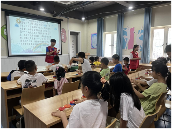 为激发孩子们学习兴趣,启迪他们的数学思维,培养他们的探究意识和动手能力,促进他们综合素质的全面提高,2023年7月4日,南奥新居社区联合雨花爱在云端青少年发展中心开展“玩转数学 智慧指尖”主题活动。
