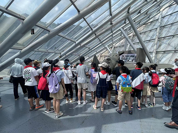 活动参观了南京抗日航空纪念馆,孩子们怀着激动的心情进入了会址的大厅,首先呈现在大家面前的是一座金色雕塑在灿烂的阳光下分外耀眼夺目。进入一号场馆的历史文物陈列馆,是航空抗日战士的历史文物展览,是中国空军从屈辱到觉醒奋起,从一盘散沙到无坚不摧的见证。讲解员向大家一一介绍了抗日战士的英雄事迹,看着成列在馆内的一件件历史文物都深深印刻在孩子们的心里。在航空烈士纪念碑前,大家自发为逝去英烈默哀一分钟,向革命烈士表达自己的敬佩与哀思。看着眼前一块块黑色大理石碑上刻着满满的烈士姓名,孩子们真切感受到了航空抗日烈士用生命锤炼的革命精神,以及气壮山河、永不退色的悲壮历史,将红色的种子种在孩子们的心中。