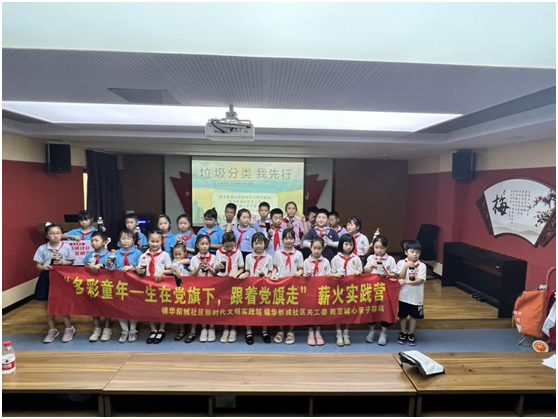 2023年7月15日,南京市雨花台区锦华新城社区新时代文明实践站,关工委联合南京诚心亲子驿站组织开展新时代好少年红领巾文明活动——“红领巾进社区”垃圾分类环境保护宣传活动。