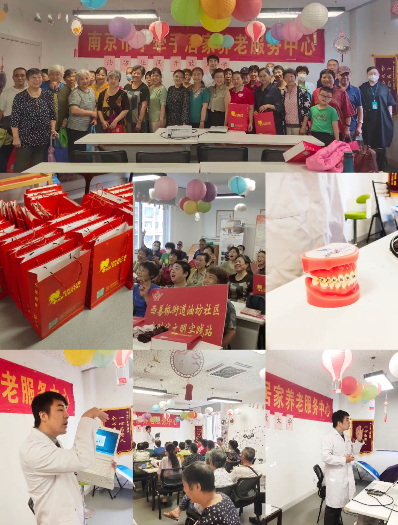 为全面普及健康生活方式,提升居民口腔健康意识,7月17日上午,油坊社区联合南京市手牵手居家养老服务中心,并邀请牙先生口腔医院针对辖区群众开展了“健康生活,从齿开始”——关爱老年口腔健康主题讲座。此次活动不仅通过口腔健康知识科普、免费口腔普查等方式,为周边社区居民的口腔健康保驾护航,提升老年群体的生活幸福感,更为建设健康中国,增进人民健康福祉作出了自己的贡献。