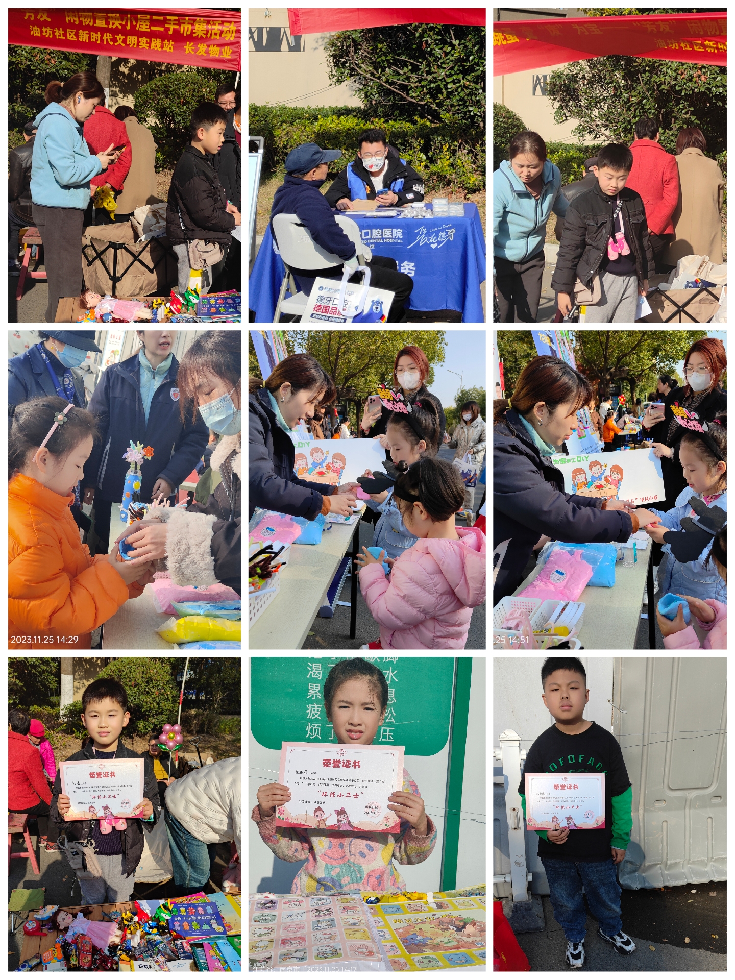 今天下午两点油坊社区琥珀花园服务分站开展了一场跳蚤市场活动,本次活动由油坊社区主办,高博体育和手牵手养老共同承办,长发物业、琥珀花园幼儿园和琥珀花园小区居民共同参与的一场二手市集活动。活动现场安排了便民活动,有口腔检查、理发、磨刀等便民服务,有闲置物品置换的二手市集活动,还有现场老师带着小朋友们动手制作小玩物,把生活中的废旧物品变废为宝的活动。活动现场,热闹非凡,小朋友们热情高涨,卖力吆喝,琥珀花园小区的居民参与度很高,手工制作的现场也是围满了小朋友,活动结束,油坊社区琥珀花园服务分站的工作人员更是给参加此次活动的小朋友一一颁发了奖状,小朋友们拿到奖状非常开心。本次活动开展顺利,活动让大家了解了便民小屋的功能,通过现场工作人员的介绍,琥珀花园小区的居民也了解了便民小屋闲置物品置换的流程,并且都表示十分感兴趣,有的小朋友当即回家拿了小玩具来置换小屋换别的玩具回家,顿时置换小屋也热闹了起来,活动持续到下午四点结束,大家都玩的很开心。