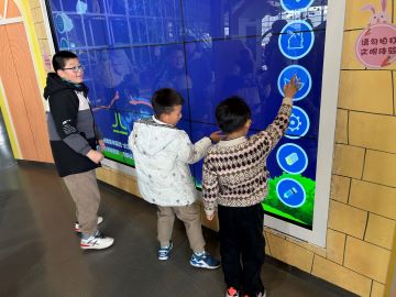 随后,在宇宙探秘展厅,超大的航天模型一下子就吸引了孩子们的目光。在讲解员的介绍中,孩子们了解了宇宙、太阳系、地球和航空航天技术知识,感受到了宇宙的浩瀚和神秘,每个人都听得津津有味。“我长大要当科学家,研发出更厉害的航天飞船,保卫祖国,探寻宇宙!”孩子们认真听着讲解员的讲解,情不自禁发出这样的感叹。