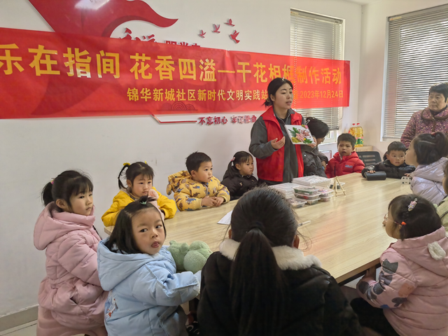 为了让辖区的居民放松心情,舒缓压力,一年四季都能欣赏到花朵的艳丽,同时丰富居民的精神文化生活,锦华新城社区新时代文明实践站联合蒙正公益12月24日上午开展了“乐在指间 花香四溢”—干花相框制作活动。