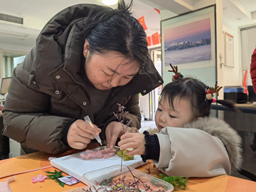 在老师的鼓励和支持下,居民用自己灵巧的双手,将原本普普通通的干花修剪、整枝,再根据不同的色彩、类型整合到一起粘贴到相框中,制作出了一幅幅独具匠心又饱含深意的作品。居民们一边制作,一边分享交流心得,整个活动现场弥漫着浓厚的创造热情和欢声笑语。