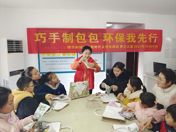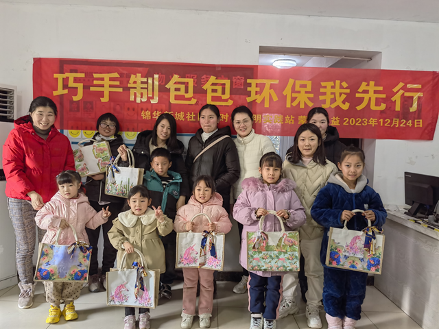 为丰富辖区居民业余生活,提升居民幸福生活指数,进一步提升社区居民环保意识、践行环保理念,12月24日下午,锦华新城社区新时代文明实践站联合蒙正公益在梦幻家小区开展了“巧手制包包 环保我先行”蝶古巴特手工包制作活动。