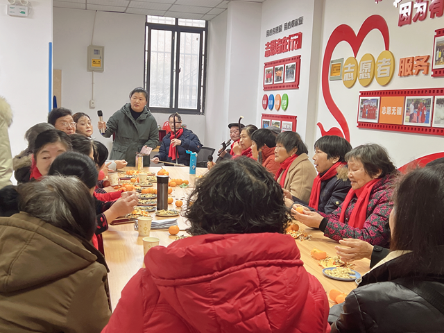 茶话会自然少不了欢快的歌声。伴随着悠扬的歌声,志愿者们品尝着各种食品,谈论着家常。在这样的氛围中,对新的一年充满了希望与期待。